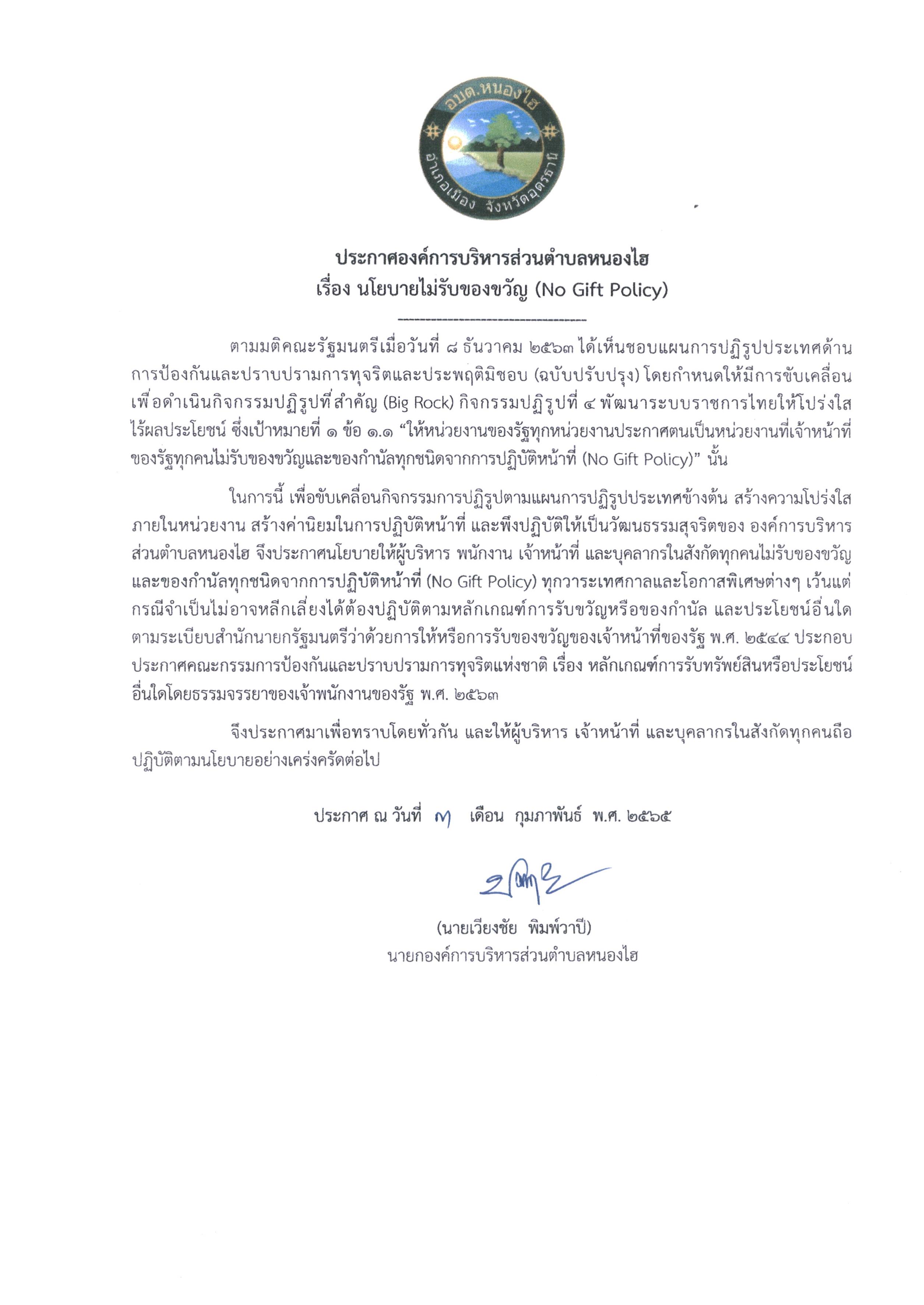-ประกาศเรื่อง นโยบายไม่รับของขวัญ (No Gift Policy)